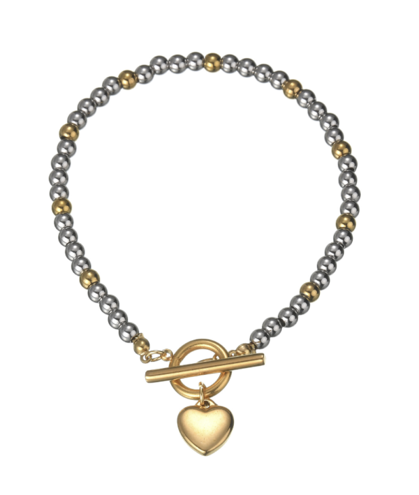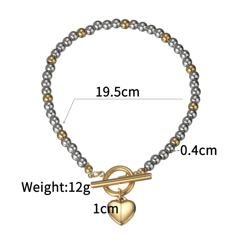 Product Name: Recycled waterproof hypoallergenic stainless steel bead T-bar heart bracelet